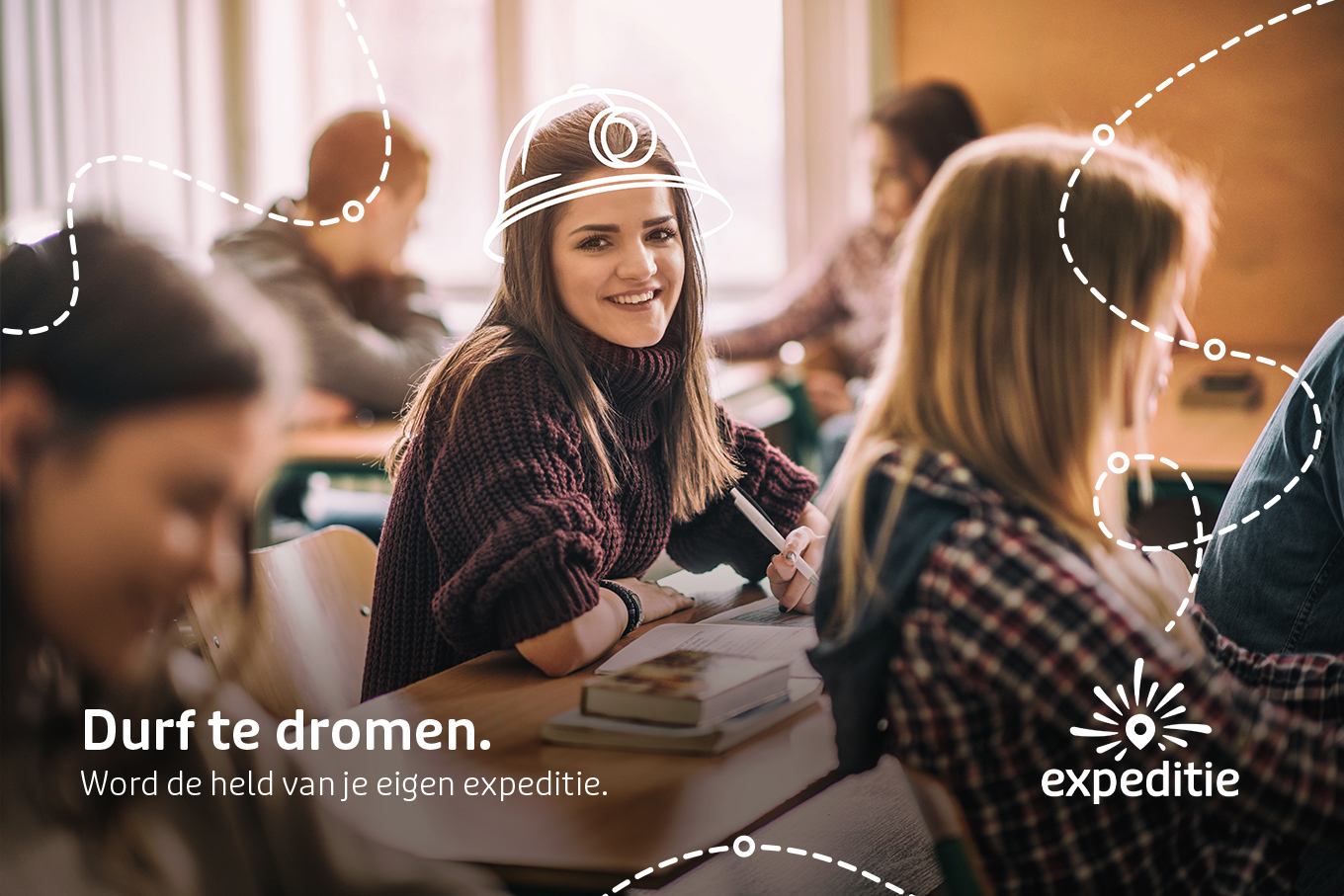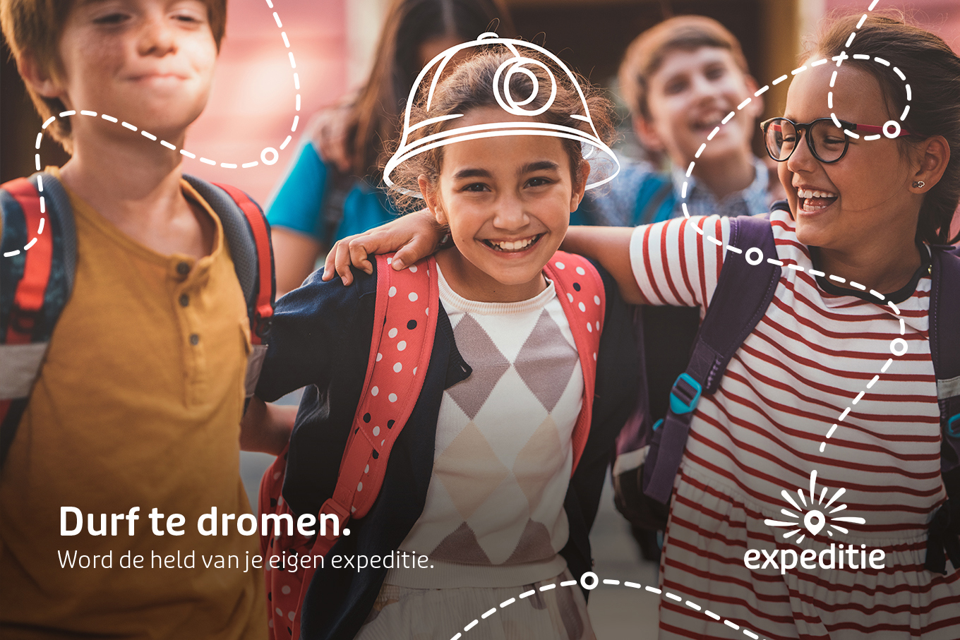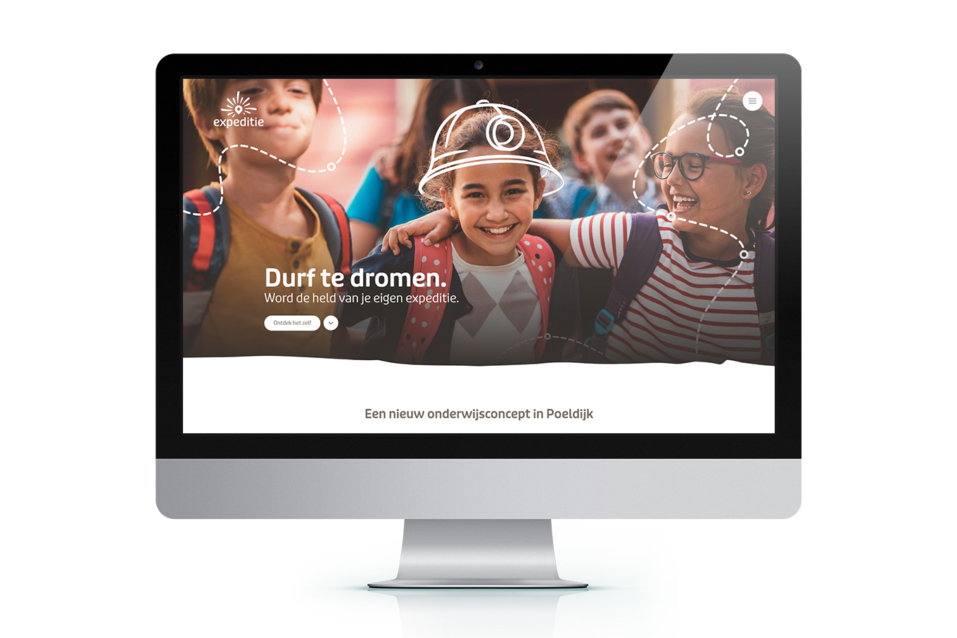 De opdracht aan ons luidde: Creëer een identiteit voor een nieuw schoolgebouw met nieuw onderwijsconcept in Poeldijk dat luistert naar de naam Expeditie! Leeftijden van 0-18 vinden hier hun onderwijs op maat.