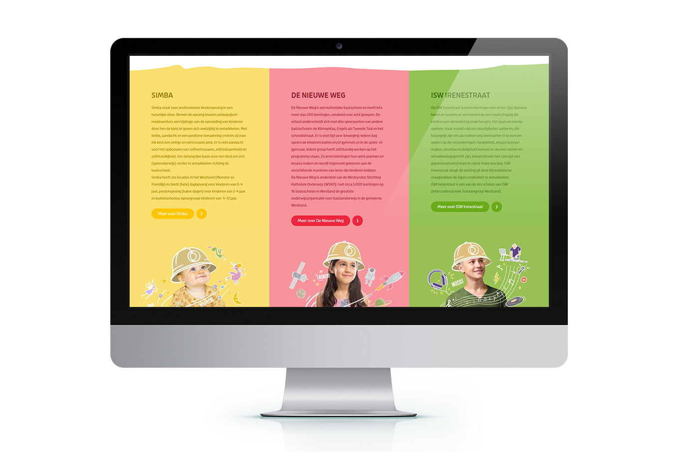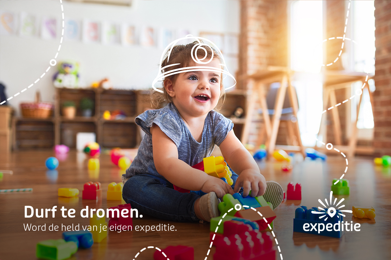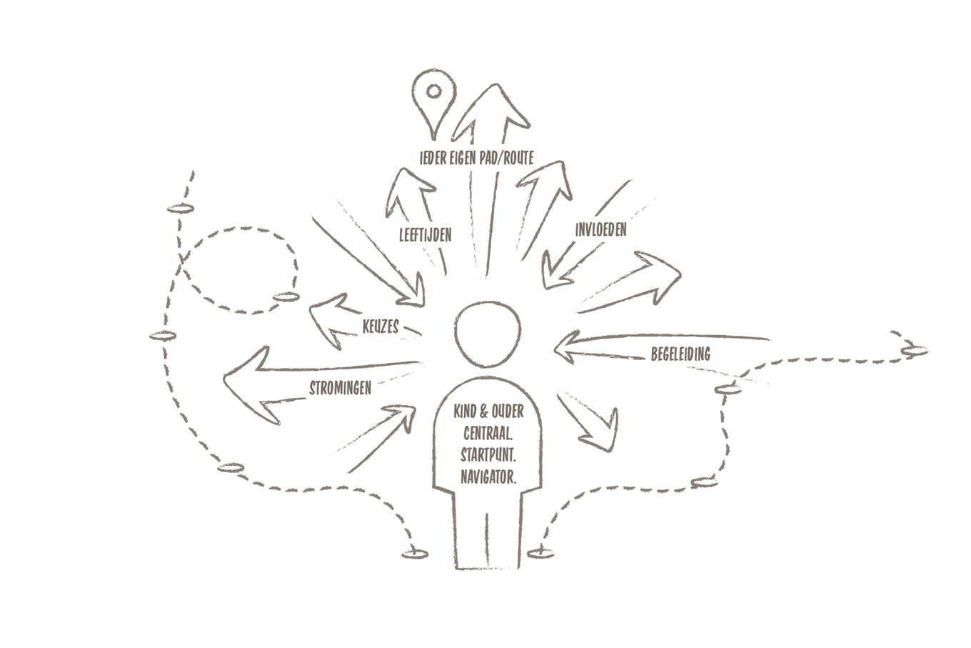 De opdracht aan ons luidde: Creëer een identiteit voor een nieuw schoolgebouw met nieuw onderwijsconcept in Poeldijk dat luistert naar de naam Expeditie! Leeftijden van 0-18 vinden hier hun onderwijs op maat.
