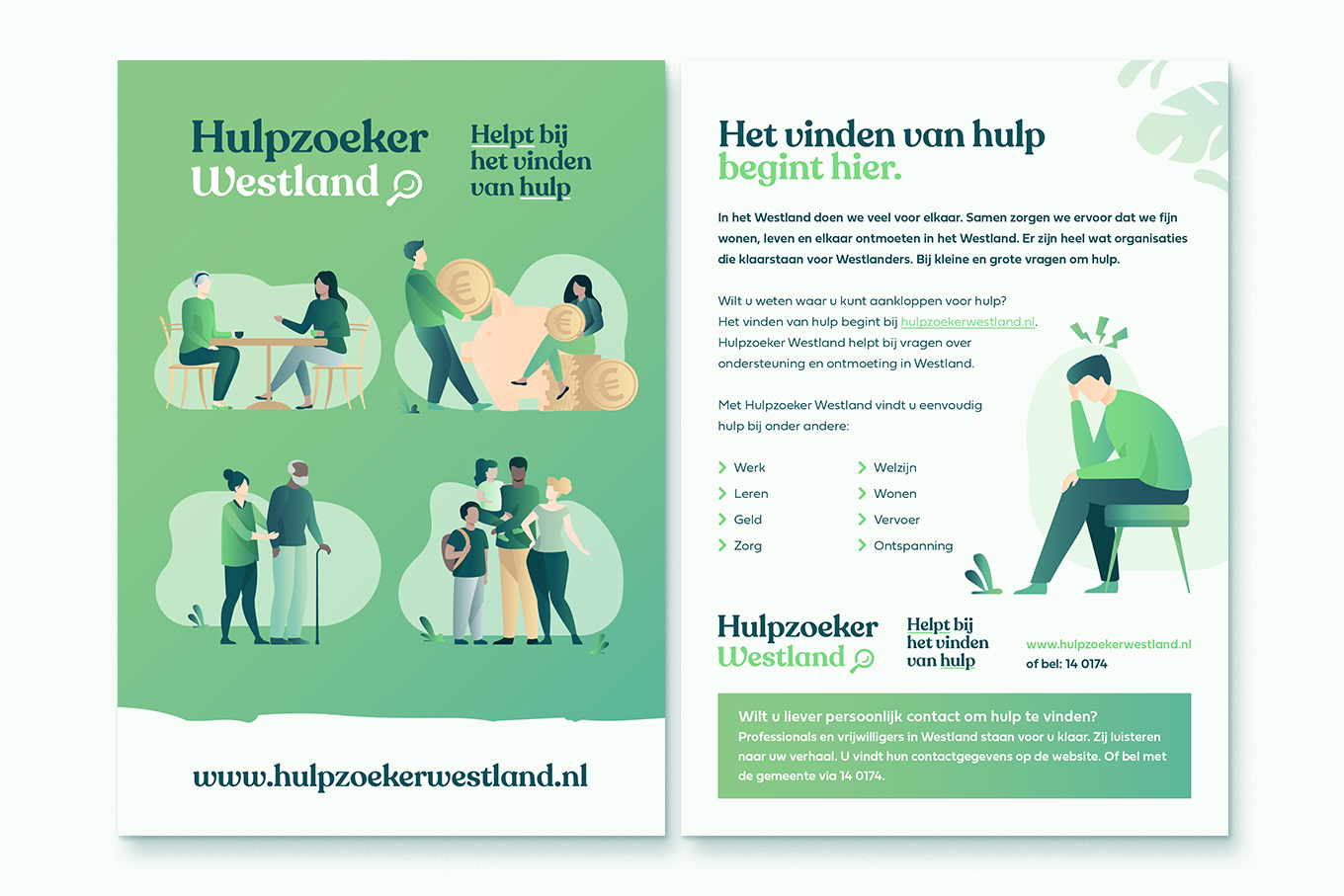 Gemeente Westland benaderde ons een nieuwe naam en uitstraling te creëren voor het Sociale domein. Een centrale plek waar je zoektocht naar het aanbod van passende hulp binnen de gemeente begint. En zo werd Hulpzoeker Westland geboren...