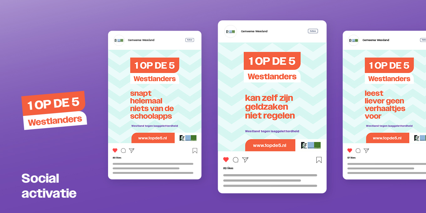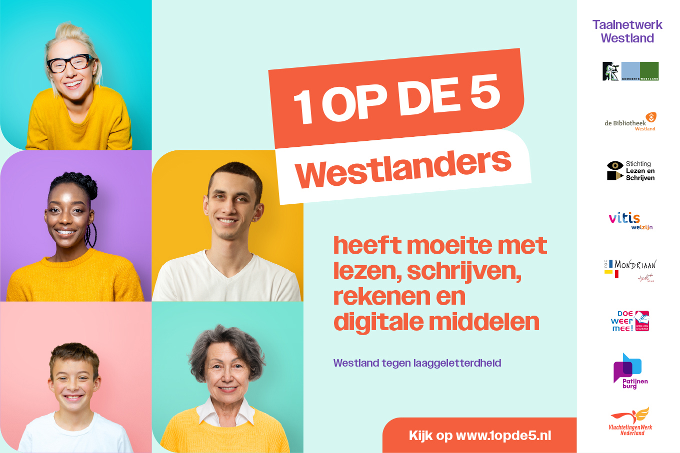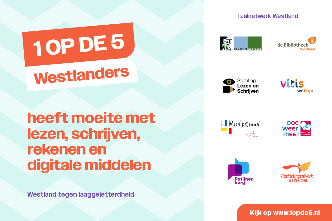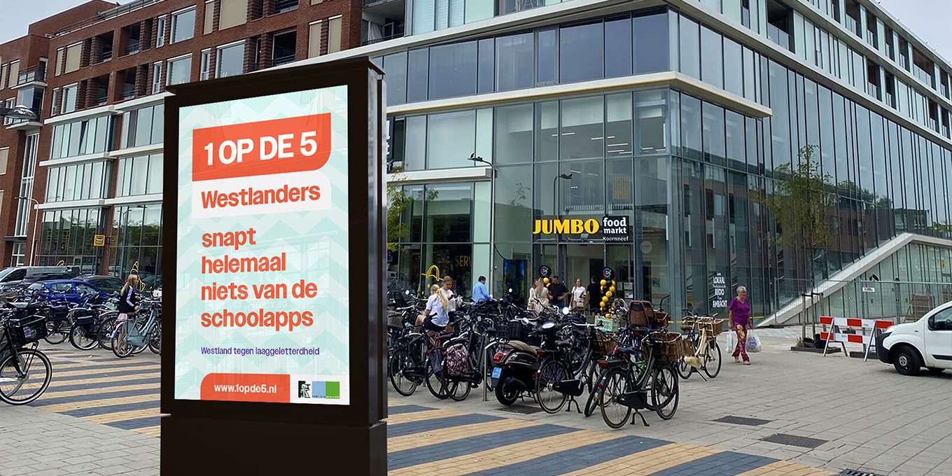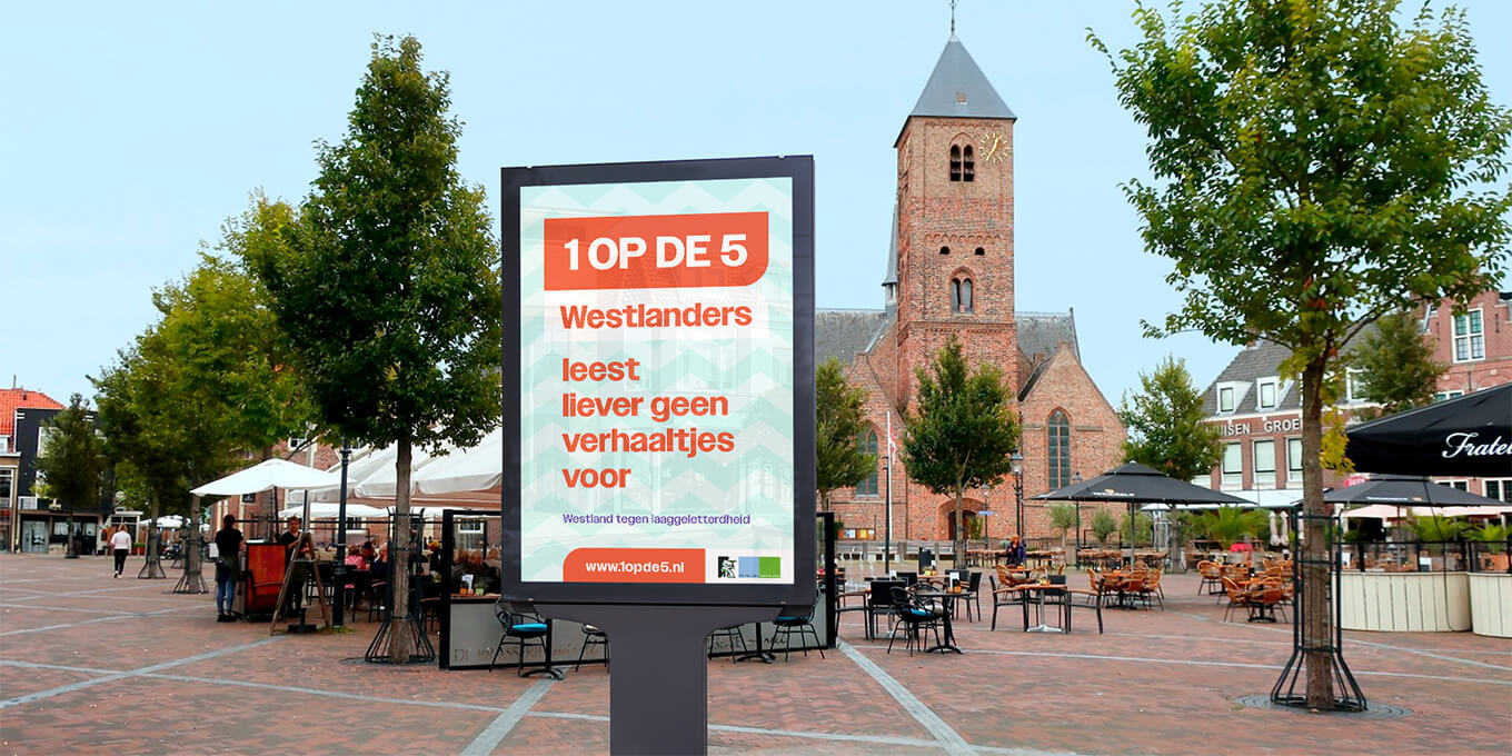 Voor de campagne "1 op de 5" hebben we in samenwerking met Gemeente Westland en diverse partners een krachtige strategie ontwikkeld om laaggeletterdheid in de regio aan te pakken. Deze langdurige campagne zet het probleem van laaggeletterdheid op de kaart en stimuleert betrokkenheid vanuit de gemeenschap. Met een reeks focuscampagnes richten we ons op het bereiken en motiveren van verschillende doelgroepen, met als doel samen een positieve verandering te realiseren. Ontdek hieronder hoe we dit maatschappelijke vraagstuk vertaalden naar een impactvolle campagne.🚀