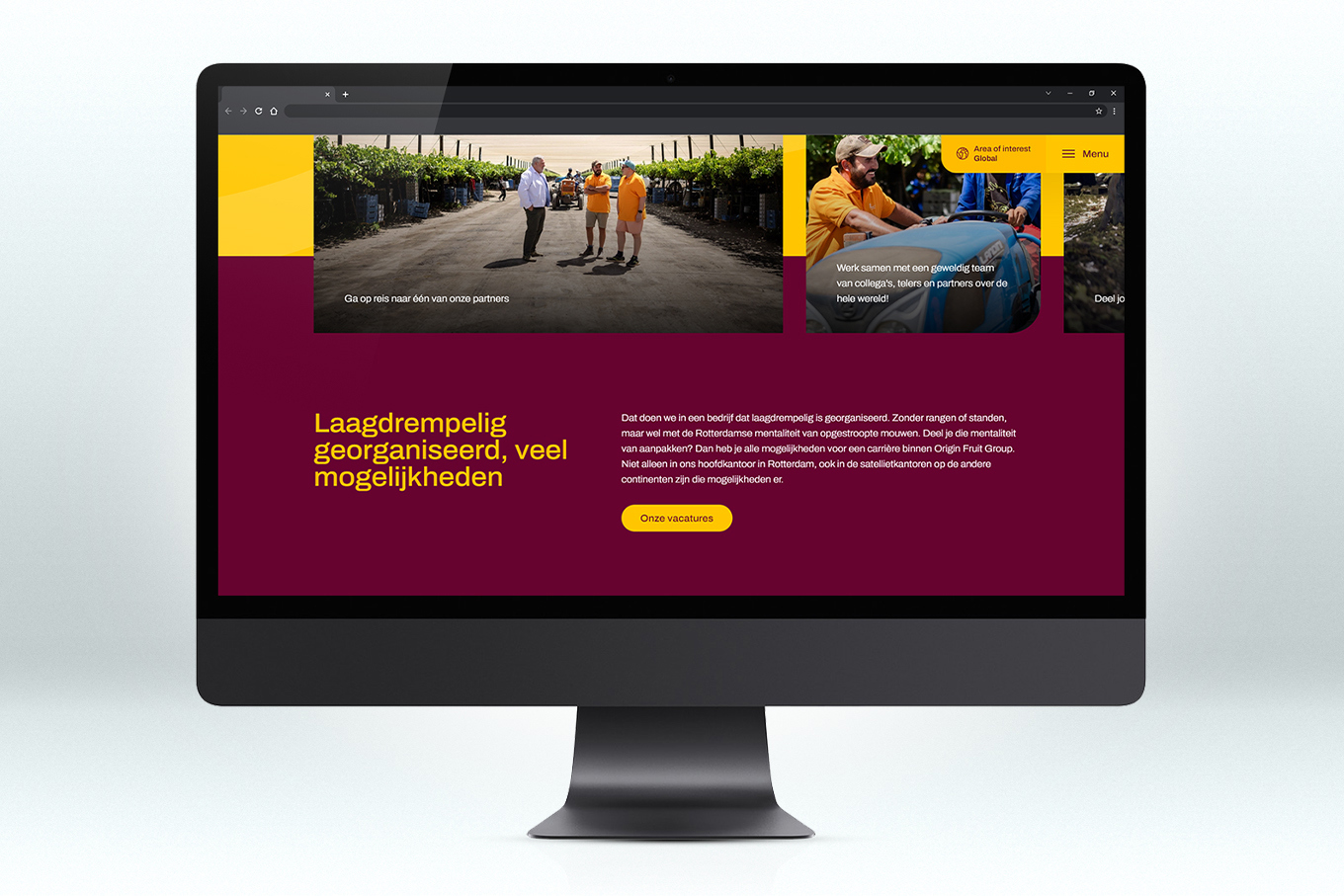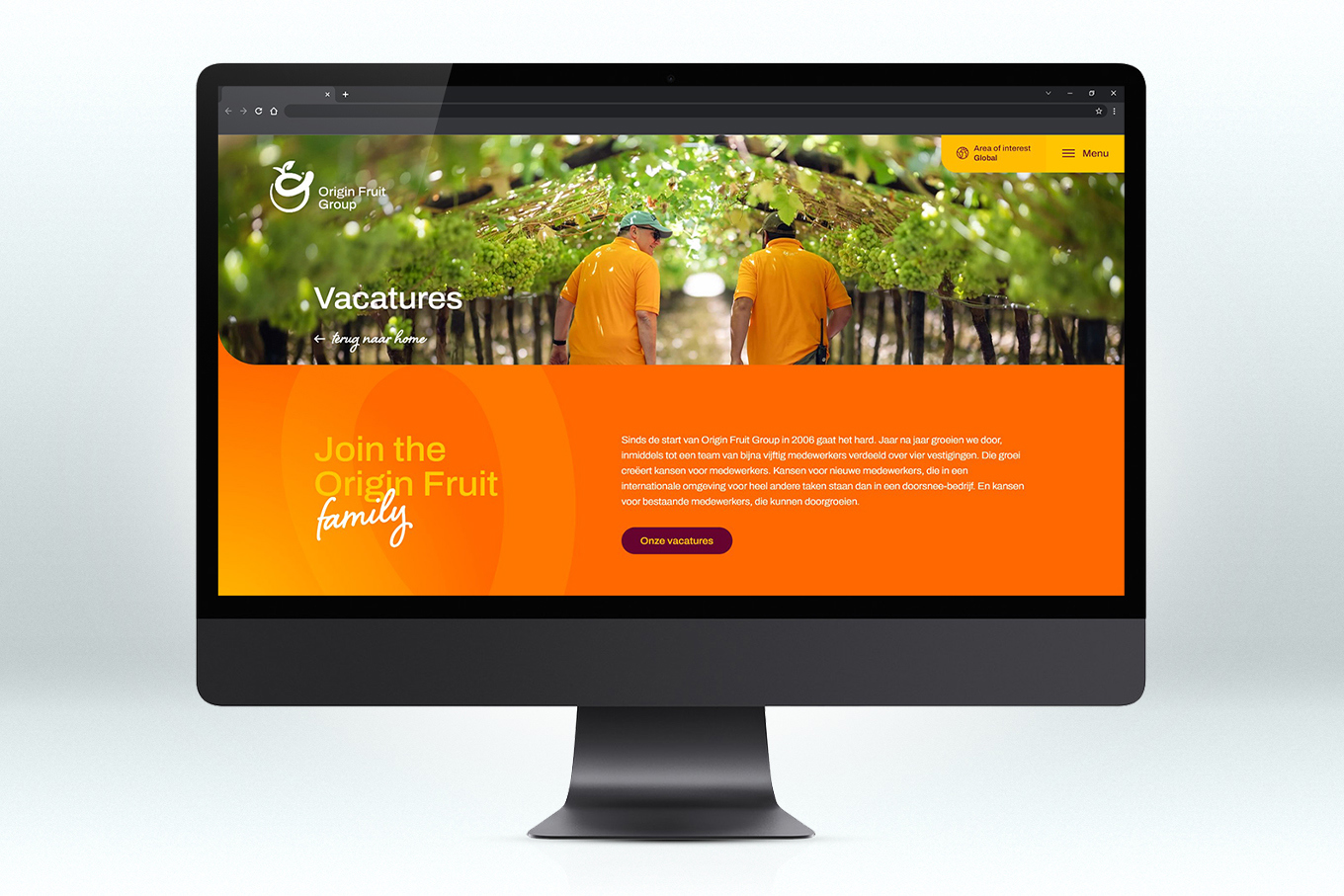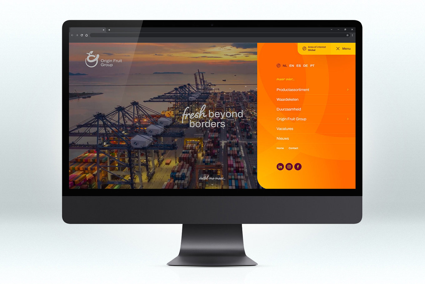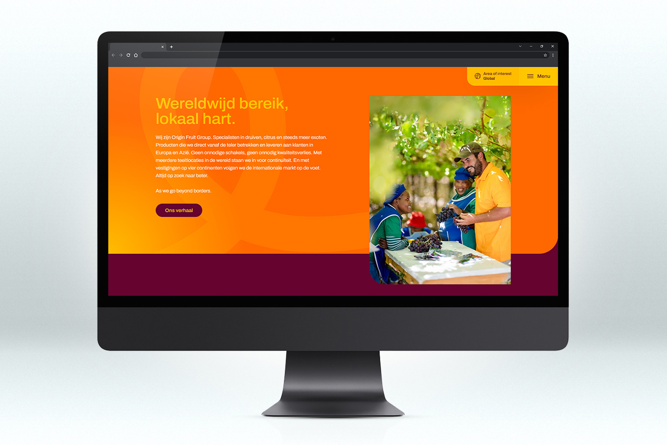 Voor Origin Fruit Group ontwikkelden we de complete merkstrategie, inclusief een nieuwe huisstijl en een bijpassende website. De uitdaging: het unieke DNA van deze internationale speler in vers fruit vertalen naar een merkverhaal dat klopt van positionering tot pixel.