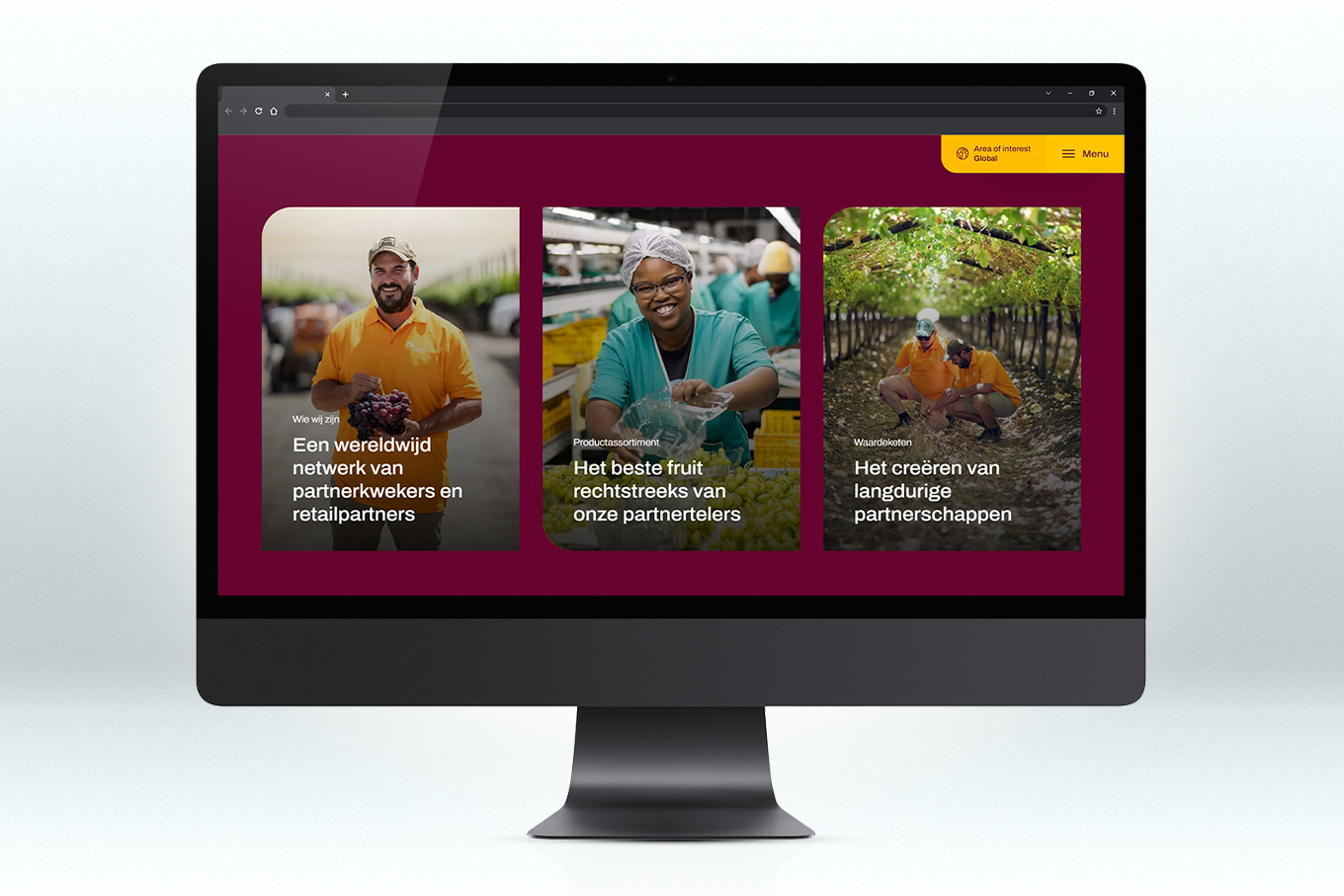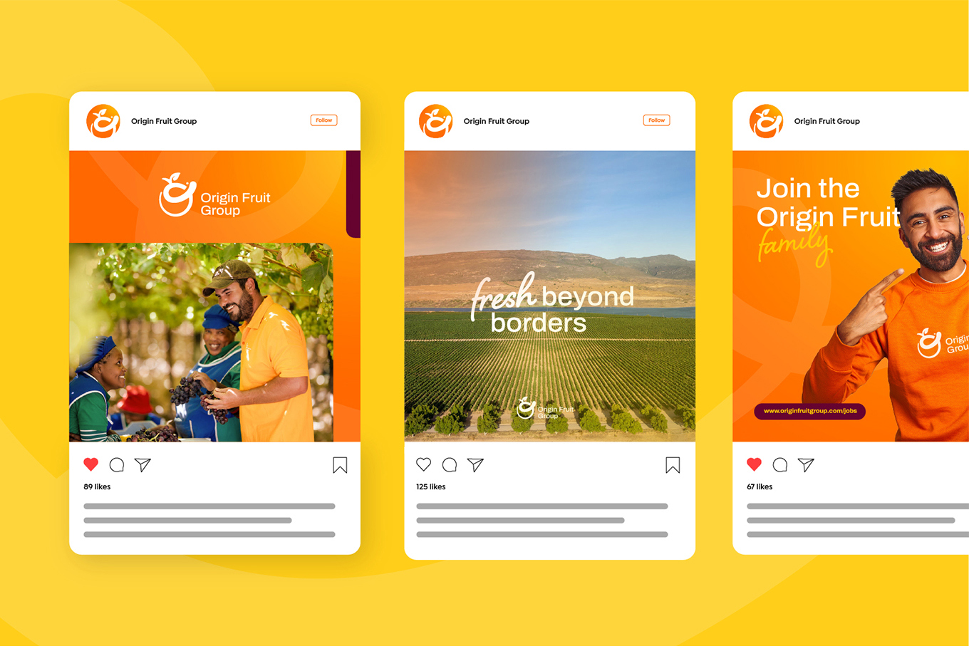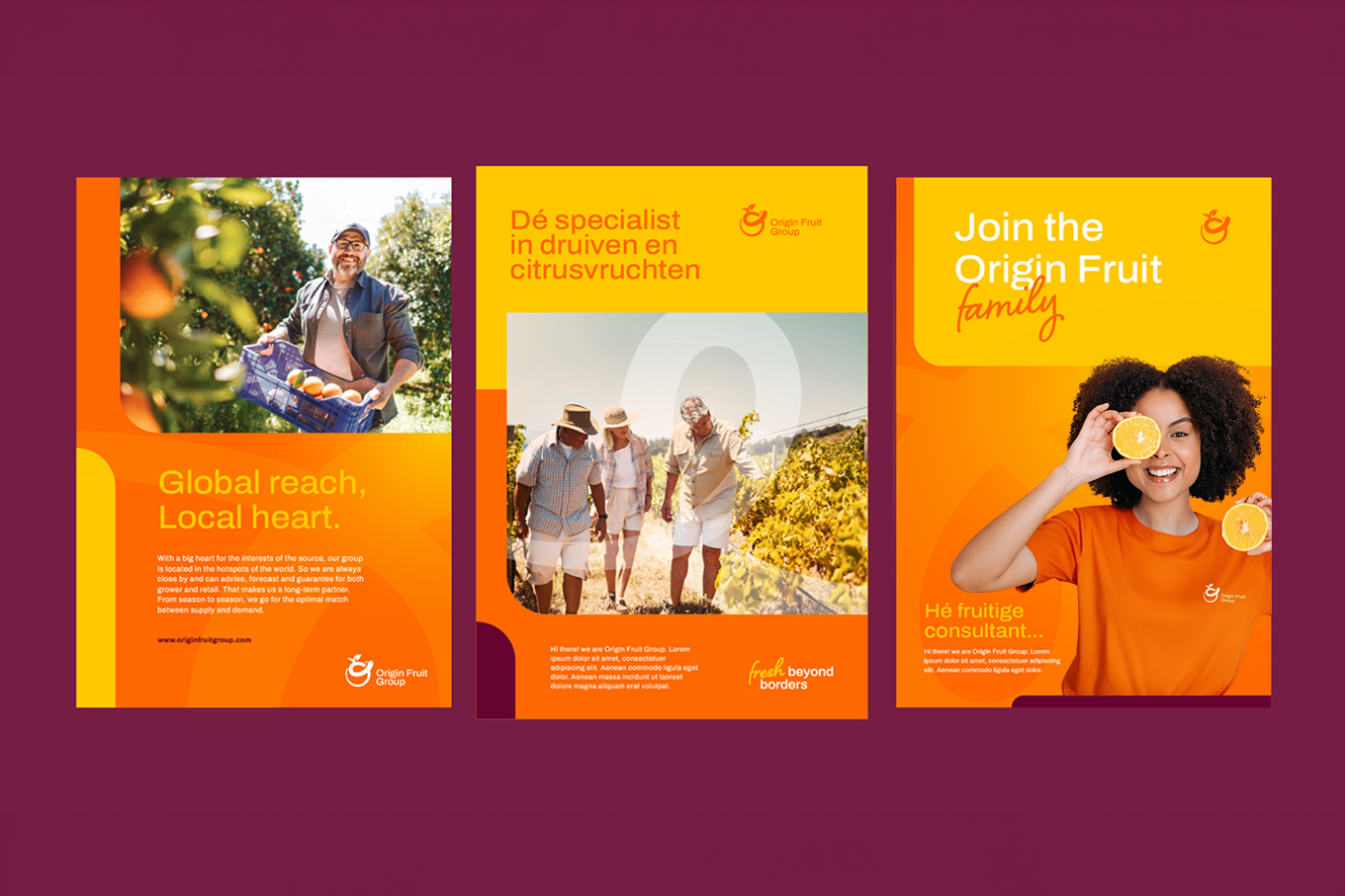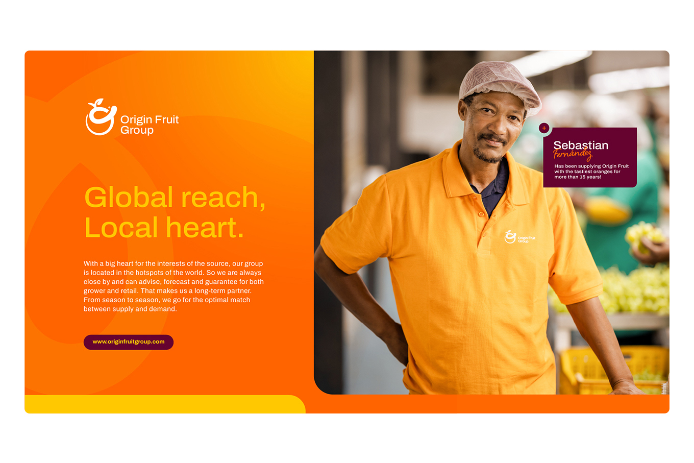 Origin Fruit opereert wereldwijd vanuit de hotspots van druiven- en citrusproductie, met een sterke focus op lange termijnrelaties, transparantie en betrouwbaarheid. In onze strategische aanpak stonden die waarden centraal. We creëerden een merk dat de energie van de internationale vershandel ademt en de verbindende rol van Origin Fruit tussen teler en retailer zichtbaar maakt.