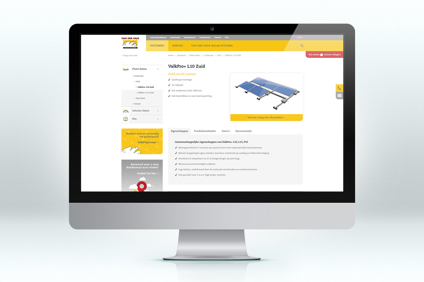 Van der Valk Solar Systems is één van de snelst groeiende bedrijven in de solarbranche en richt zich volledig op de productie van solar montagesystemen. Panorama Studios ontwikkelde de nieuwe website, een technisch B2B-hoogstandje vol handige oriëntatie- en verkooptools plus koppeling met hun PIM-pakket.