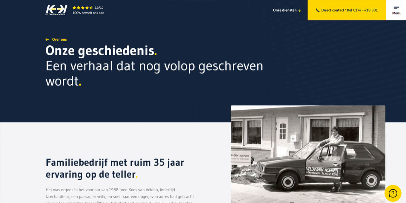 Voor Veldwerk Koerier ontwikkelden we een website die past bij hun snelle, flexibele en dynamische werkwijze. Deze koeriersdienst uit De Lier beschikt over een landelijk netwerk en een slimme logistieke aanpak met strategisch geplaatste voertuigen voor spoedopdrachten.