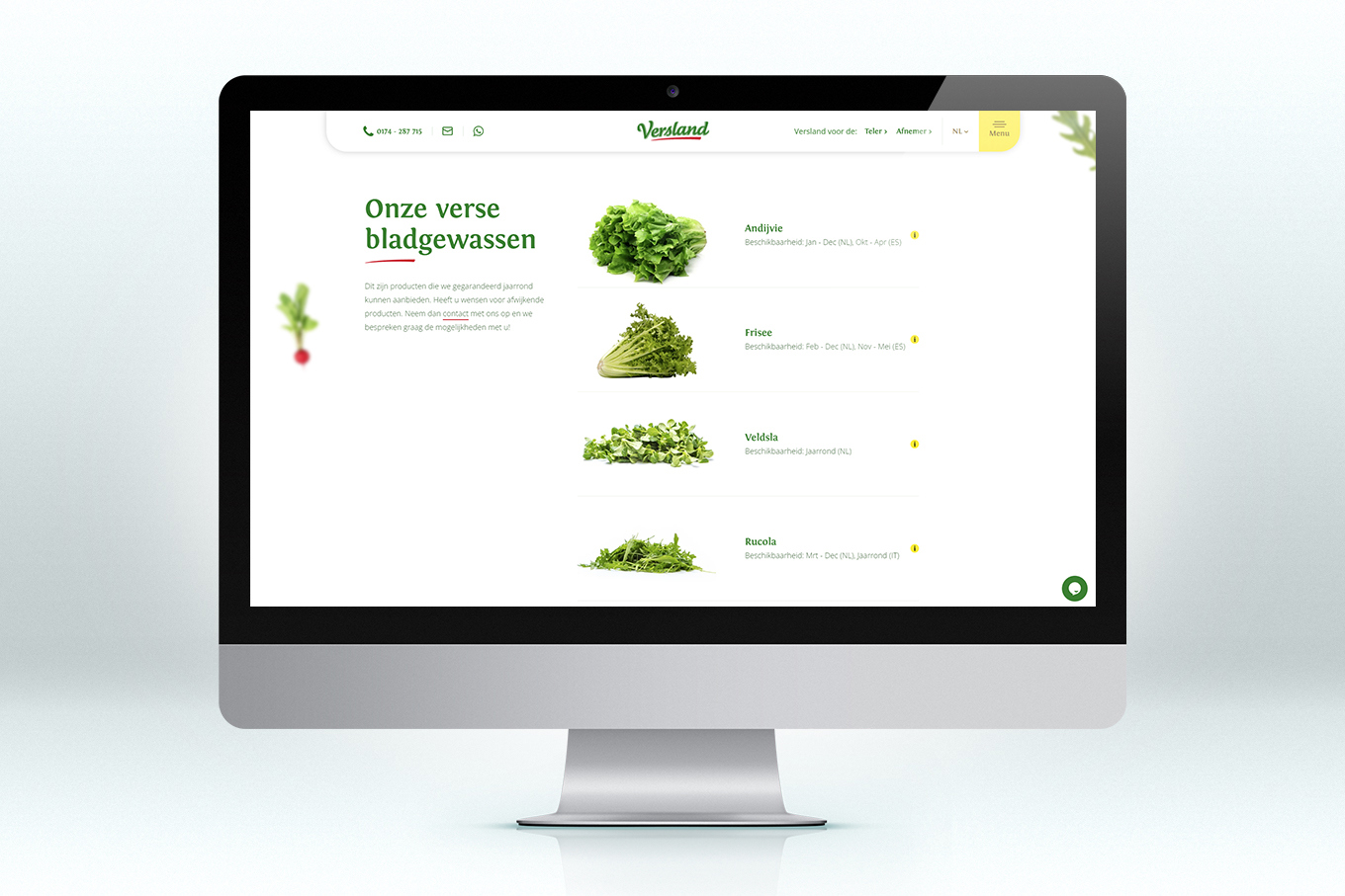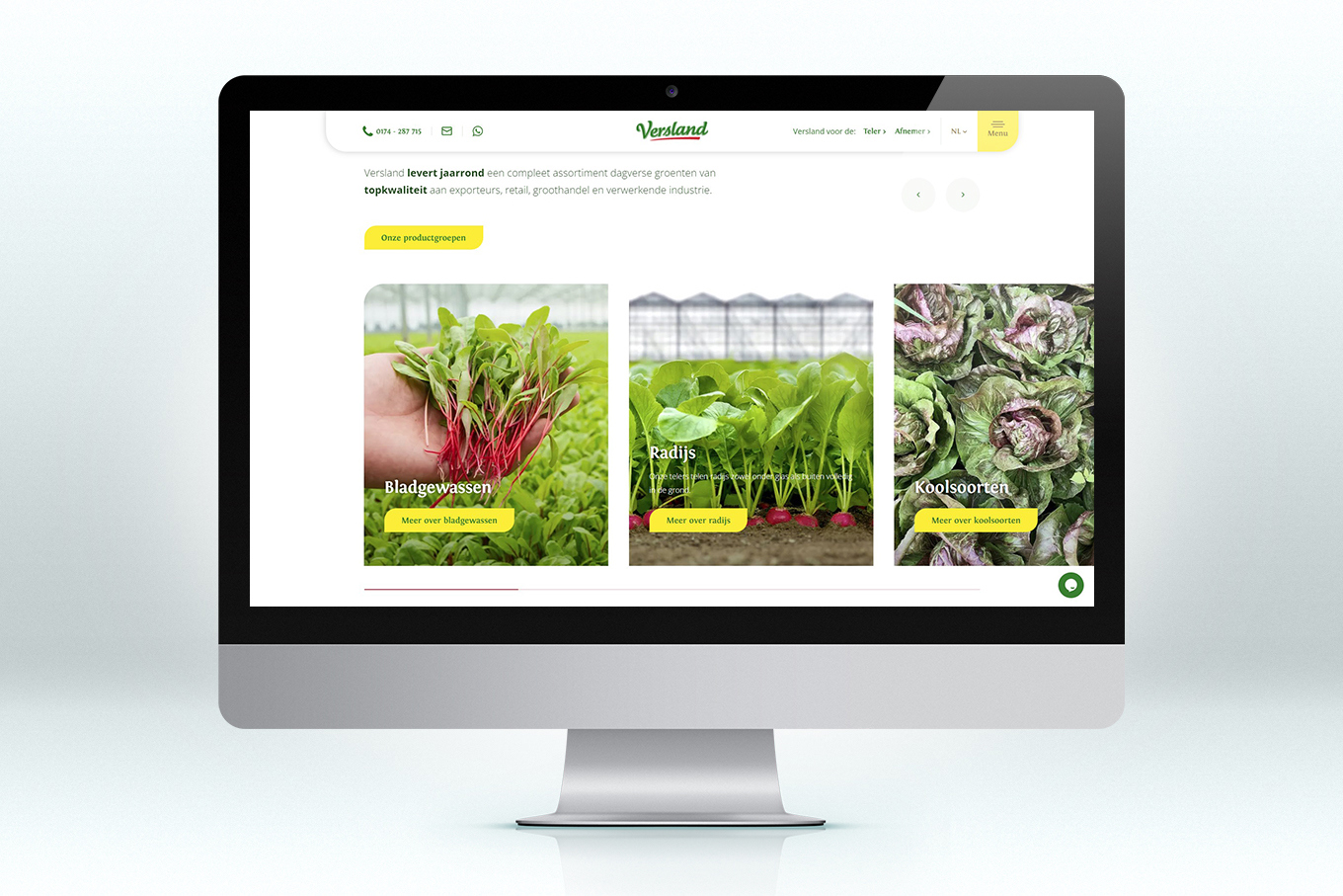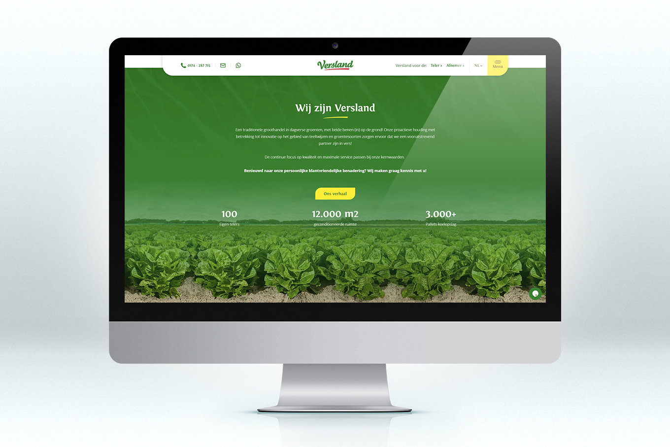 Voor Versland, een toonaangevende leverancier van dagverse groenten, hebben we een frisse huisstijl en een moderne website ontwikkeld. De vernieuwde uitstraling verwijst nog duidelijk naar oude huisstijl, maar in een nieuw en modern jasje. Op de website krijgen bezoekers een helder overzicht van hun uitgebreide assortiment aan groenten, gepresenteerd in een eigentijds design dat perfect aansluit bij de visie van het bedrijf. Met deze upgrade is Versland weer helemaal klaar om indruk te maken in de markt. 🌱