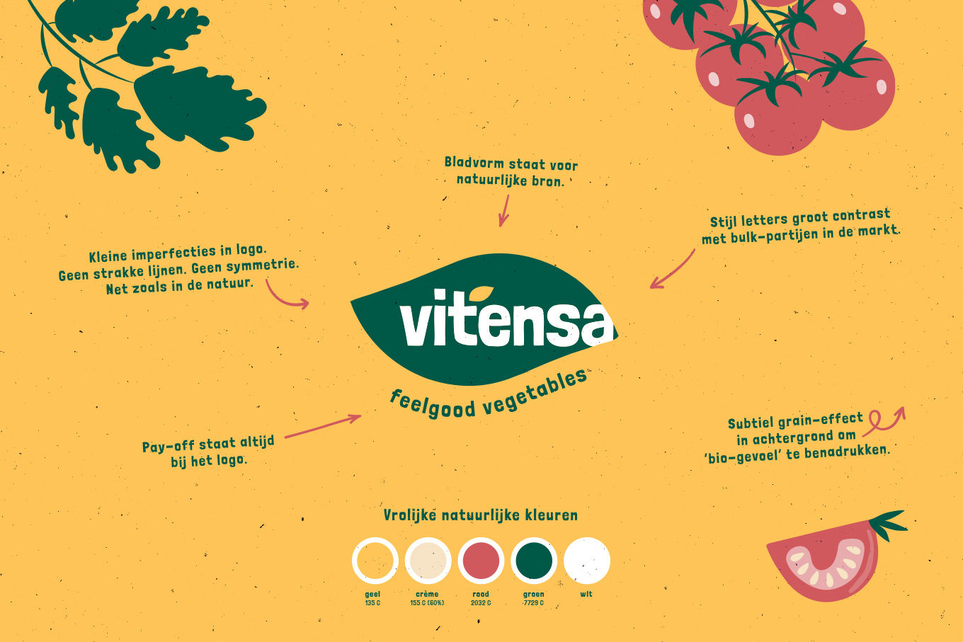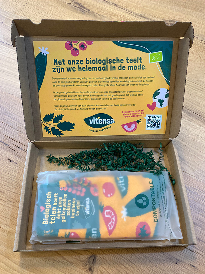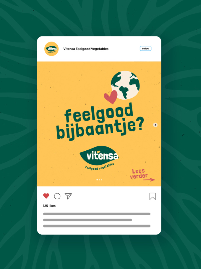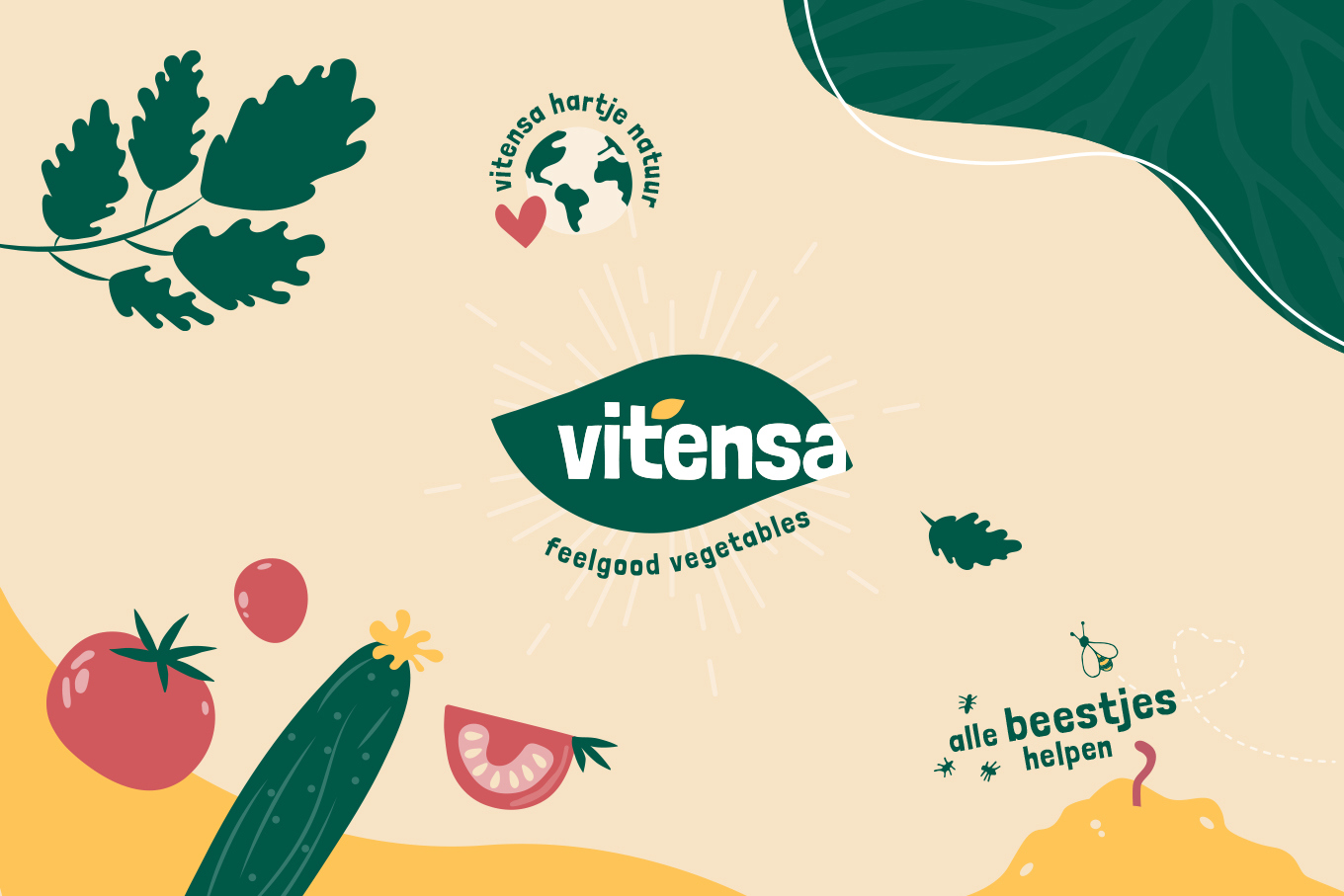 Om die andere richting een gezicht te geven hebben we vanaf het begin Panorama Studios meegenomen in ons verhaal met de vraag een nieuwe huisstijl te ontwikkelen. Met de nieuwe stijl wilden we overbrengen dat we in nauwe verbinding met de natuur een (h)eerlijk product telen. Natuurlijk met de beide voeten op de grond waarin de wortels van onze mooie biologische producten groeien. ’Vitensa Feelgood Vegetables’ Dat klinkt goed toch?