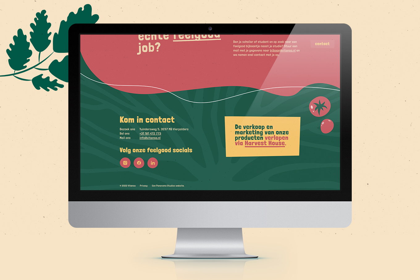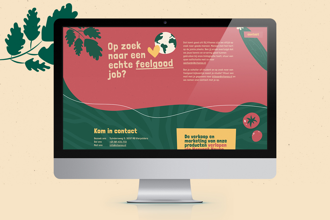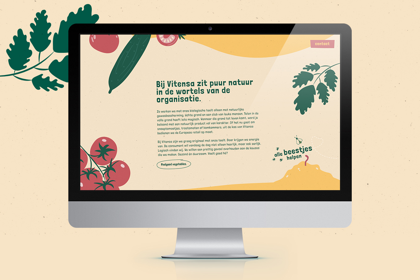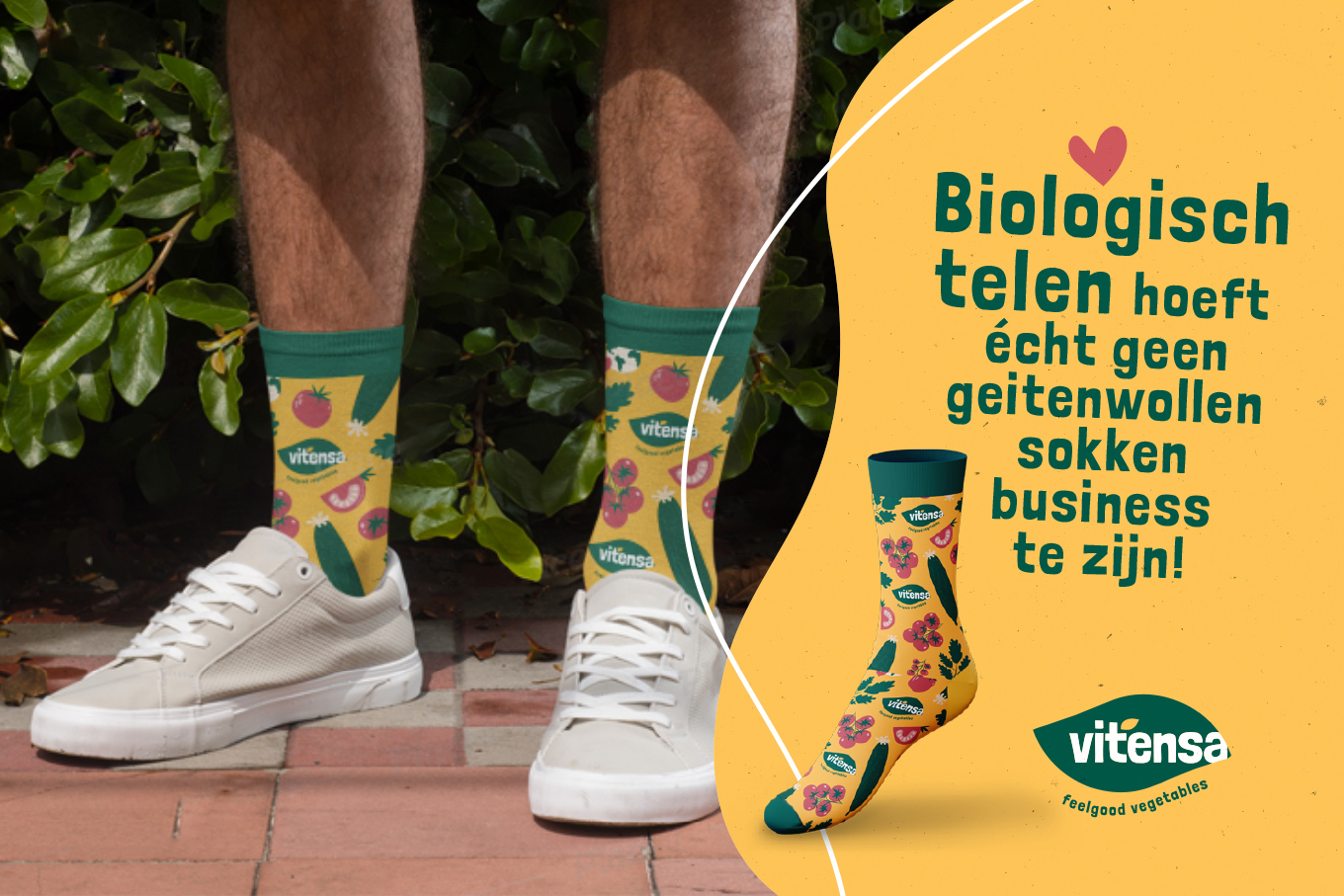 Om die andere richting een gezicht te geven hebben we vanaf het begin Panorama Studios meegenomen in ons verhaal met de vraag een nieuwe huisstijl te ontwikkelen. Met de nieuwe stijl wilden we overbrengen dat we in nauwe verbinding met de natuur een (h)eerlijk product telen. Natuurlijk met de beide voeten op de grond waarin de wortels van onze mooie biologische producten groeien. ’Vitensa Feelgood Vegetables’ Dat klinkt goed toch?