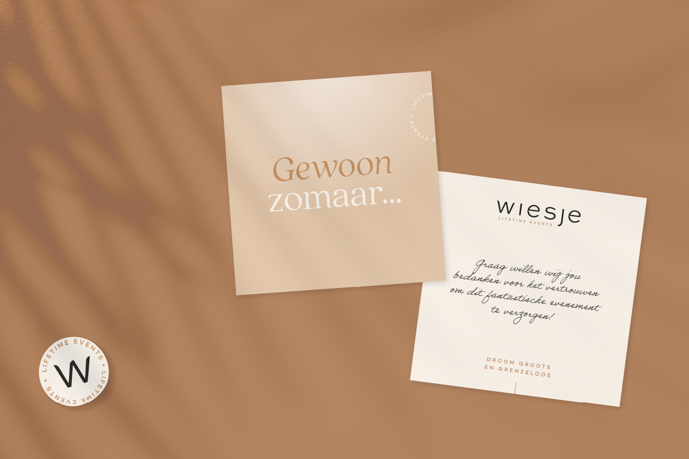 Na 17 jaar van Wedding & Planning naar Wiesje Lifetime Events. Team Panorama Studios nam ons mee in het creatieve proces en met een fantastisch resultaat. In de afgelopen jaren kregen we naast huwelijken ook steeds meer vraag naar andere 'Lifetime Events' dus onze naam Wedding & Planning was niet meer toereikend. Om zo’n stap te maken was spannend maar met de begeleiding van team Panorama aan onze zijde is het een heel mooi avontuur geworden. Klaar voor de toekomst! Celebrate Lifetime Events!Dank jullie wel.