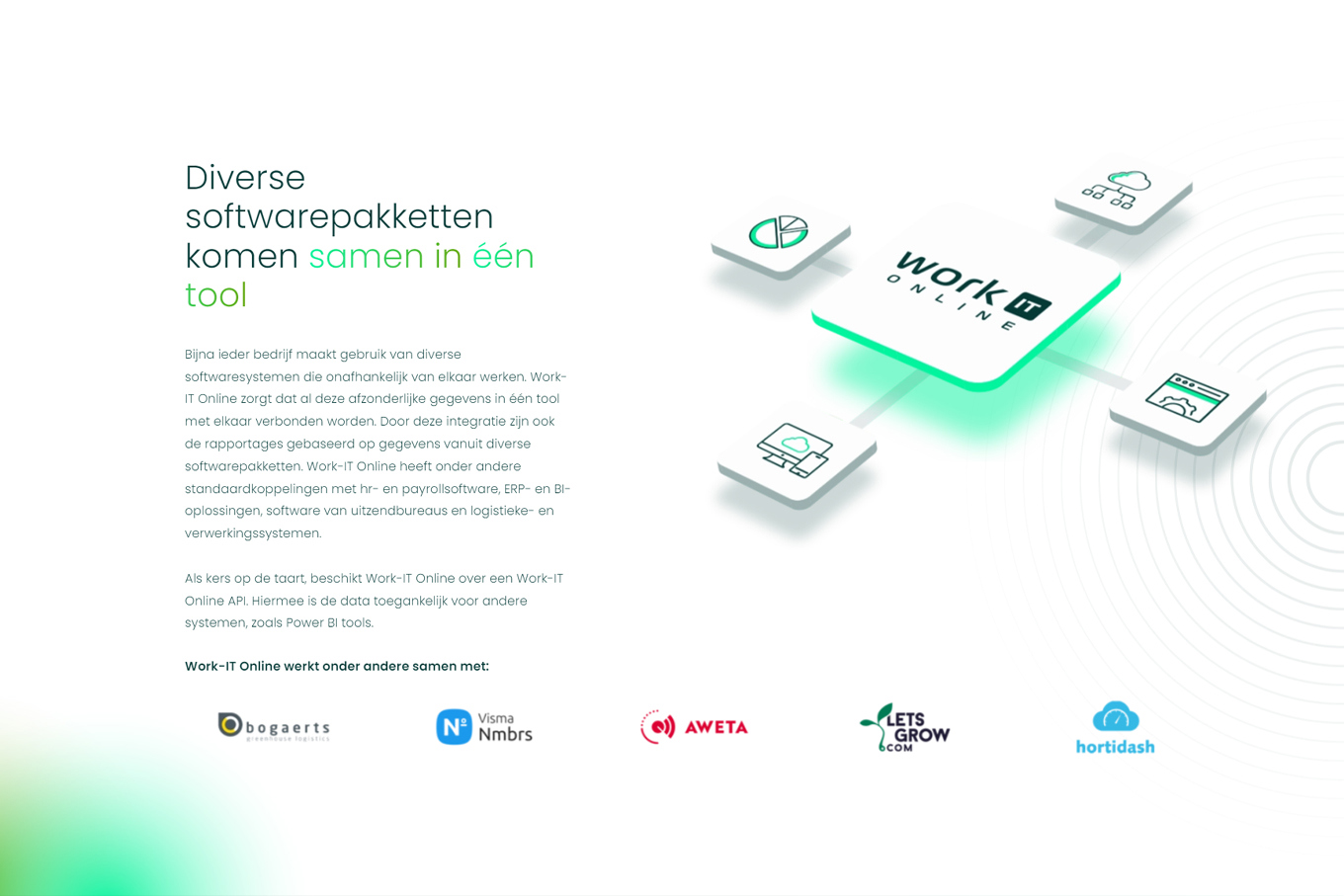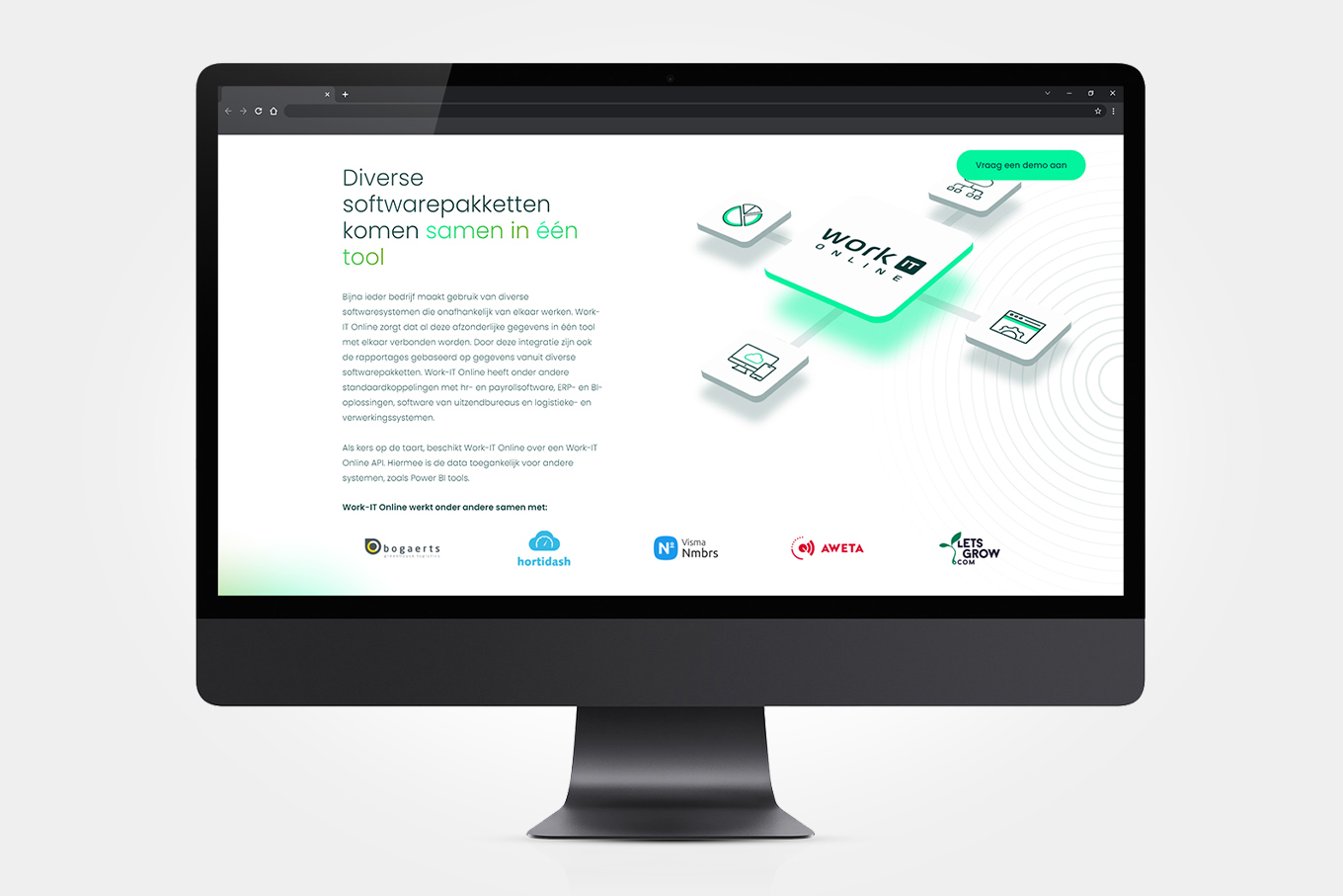 Work-IT Online is dé online softwareoplossing voor arbeids- en productieregistratie in de glastuinbouw. Controle, vrijheid, inzicht en overzicht. Alle bedrijfsbrede data in één tool door eindeloos veel integraties. Aan ons de schone taak dit verhaal in een inspirerende pitch en dito huisstijl te gieten.